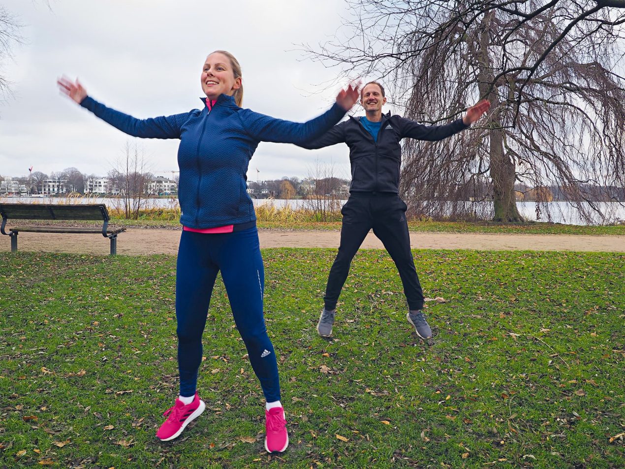 Die beiden Alster Bootcamp Sportler Ramona und Jan sind nicht nur achtsam mit Ihrer eigenen Gesundheit, sondern auch im Umgang mit Ihrer Umwelt. Sie tragen nachhaltige Sportkleidung von adidas mit Überzeugung.